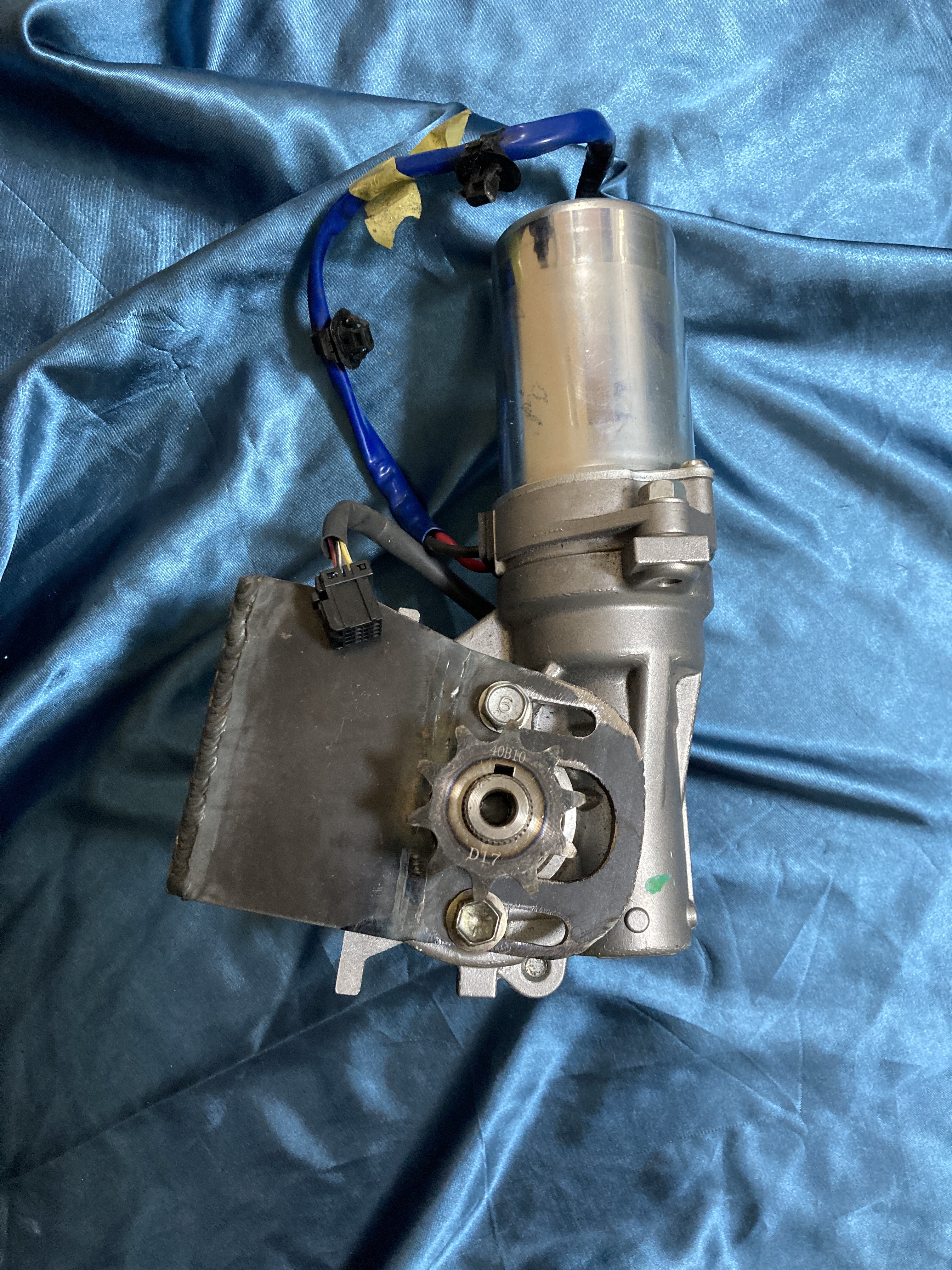 パワステ制御用のアンプが付属する場合がございますが、ビードローラー駆動には使用しません。邪魔なら撤去してください。ギアボックスから出ているトルクセンサーの配線も不要です。