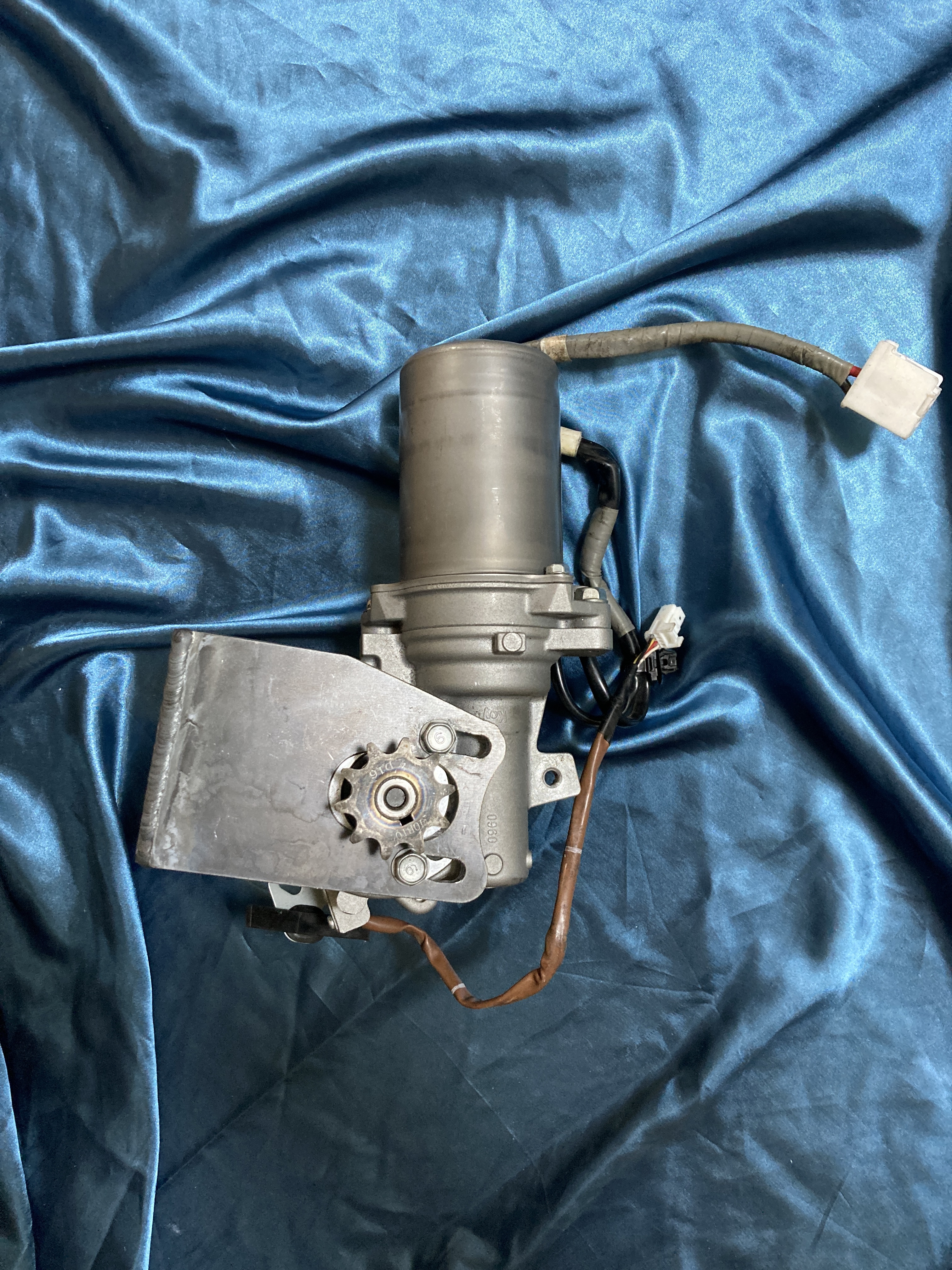 モーターギアボックスが中古品を材料にしています。取付け形状が元車の違いでさまざまで、入手状況に左右されブラケット形状が変わります。この商品ではブラケットとモーターギアボックスの形状違いが選べます。